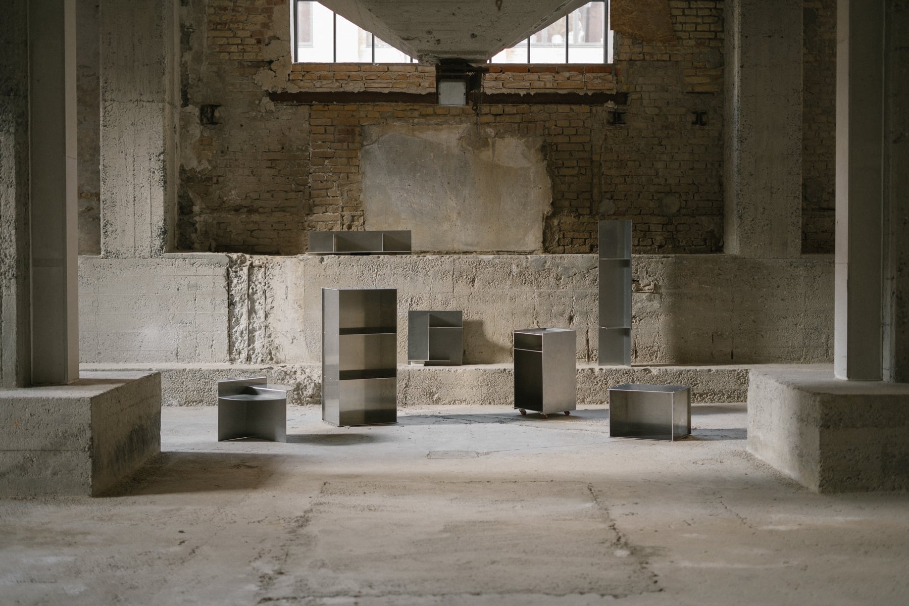 Created by designer Jonas Trampedach in 2011, the technique used to create the Rivet Series is a hand-hammered alternative to welding aluminum. This technique contributed to a defined and legible vocabulary that has led to an expanded collection—including the Glass Rivet Box Table as its second material iteration.