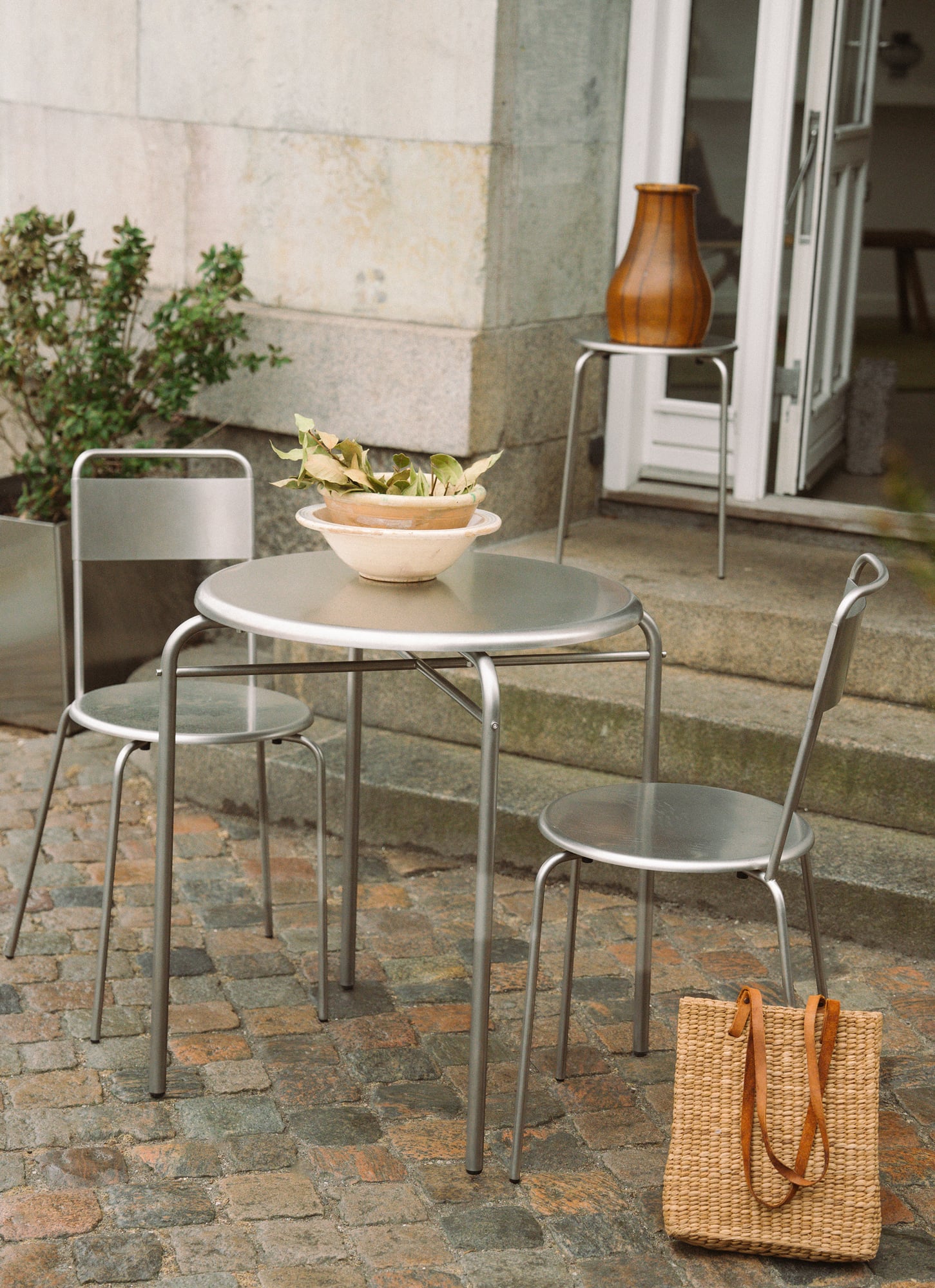 Designed from an architectural point of view, the slim profile of the Petit Rond Table contains immense thought: into every dimension, its durability, and its character. As part of a full dining set, the Petit Rond Table offers a flexible yet substantial outdoor dining possibility.