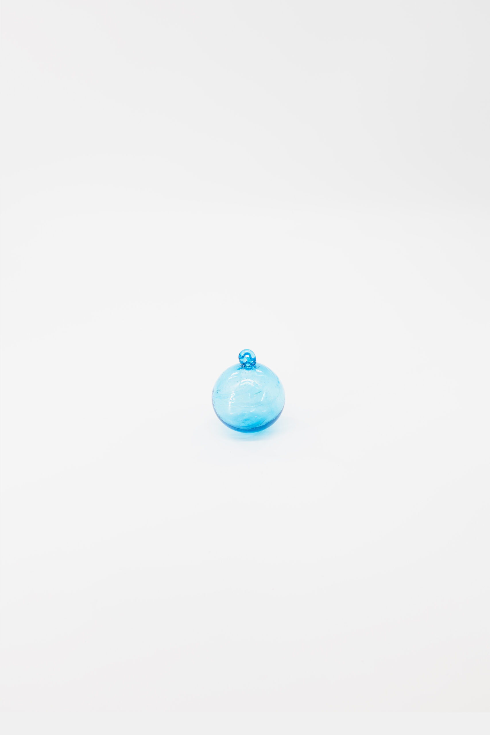 Round decorative glass bauble with a small loop. You can set them on shelves or hang them in front of windows as they catch the light beautifully. During the Christmas season, you can use them to decorate your tree! The “Boule Petit Turquoise” is mouth-blown from recycled glass by French master artisan glassblowers.