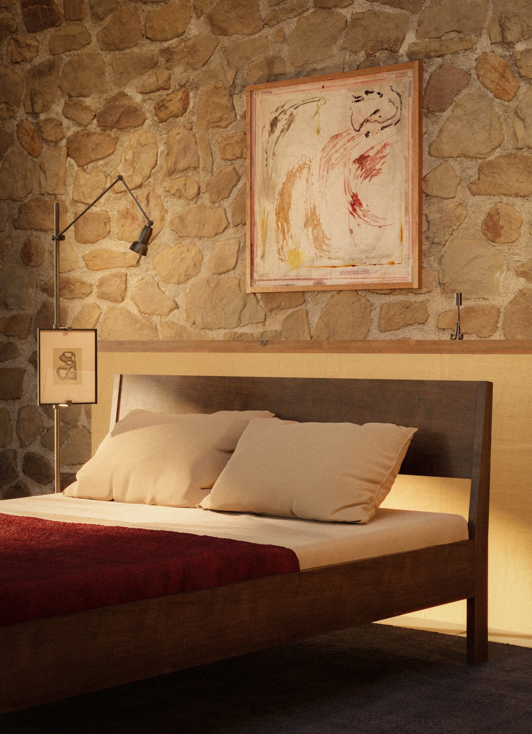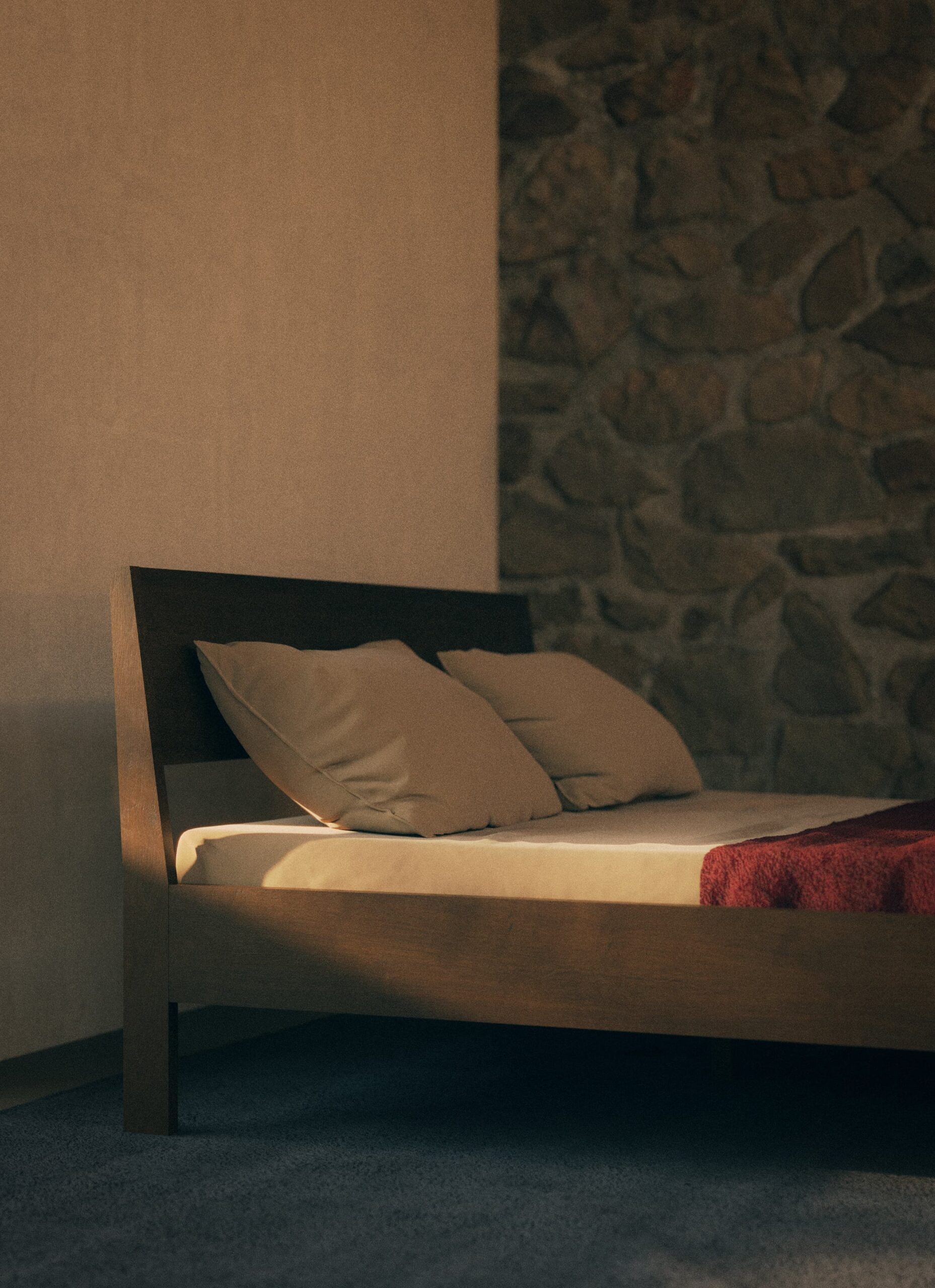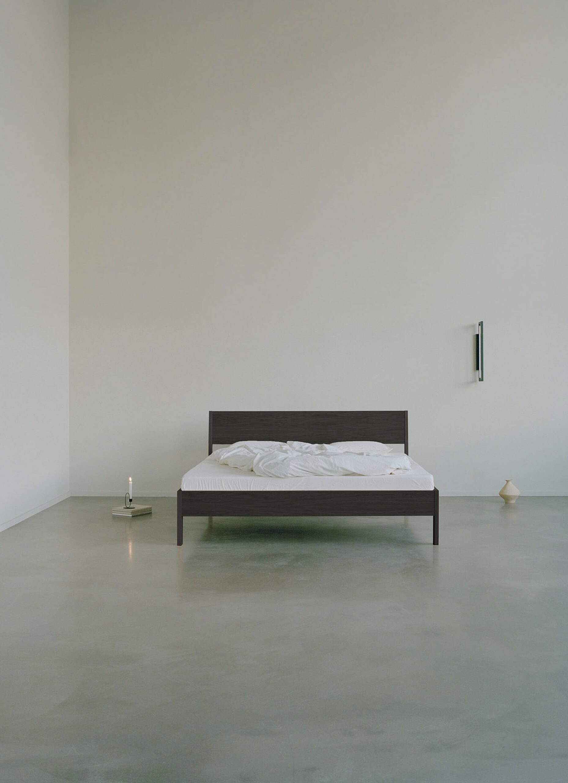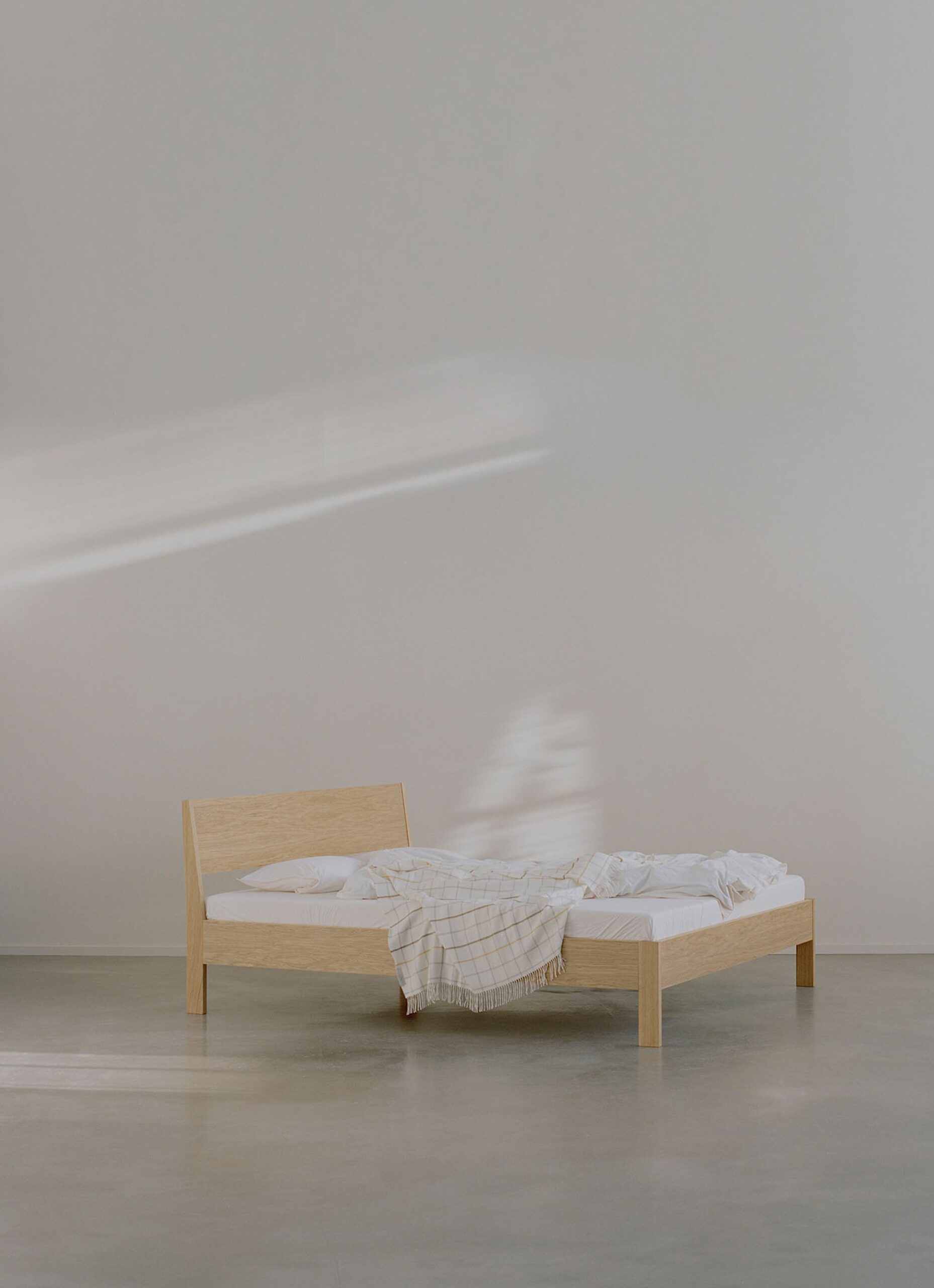 Exploring geometric simplicities, Ejer Bed Frame is created to provide a tranquil getaway from the rush of everyday life. The silhouette is materialized by the merging of a firm construction and the organic warmth of oak wood, creating a well-balanced synergy between the two components.